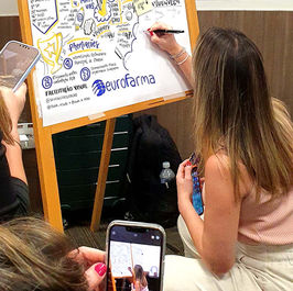 Captura visual de informações e discussões durante conferências, workshops, planejamentos estratégicos, team buildings, brainstormings, aulas e encontros online utilizando ilustrações, diagramas e mapas mentais.